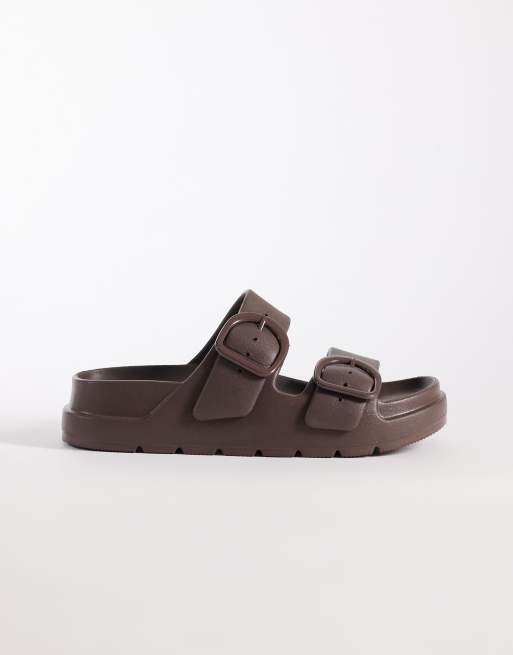 ASOS DESIGN Finn double buckle slides in chocolate