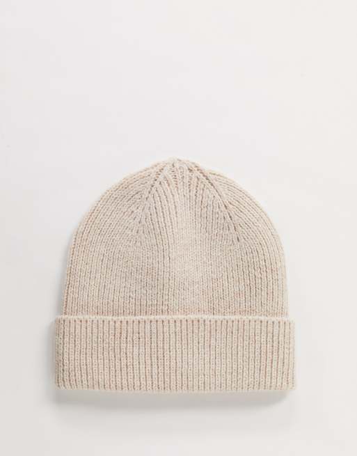 ASOS DESIGN fisherman rib beanie hat in polyester in beige