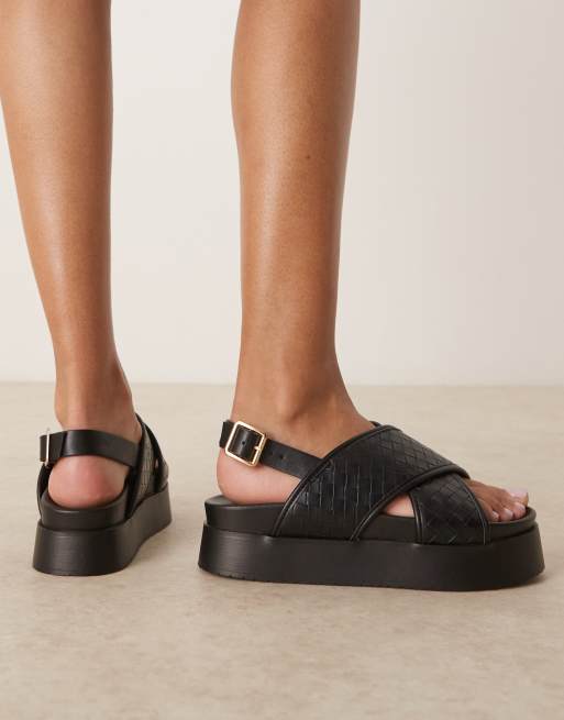 ASOS DESIGN Flame woven cross strap footbed sandals in black