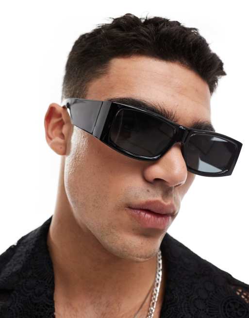 ASOS DESIGN flat brow square sunglasses in black
