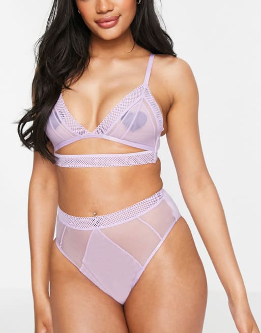 ASOS DESIGN Fleur minimal mesh soft bra & high waist brazilian in lilac