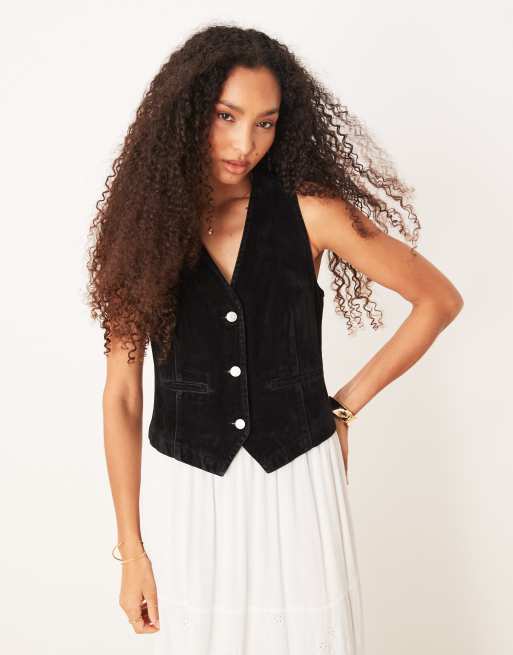 ASOS DESIGN flocked denim vest