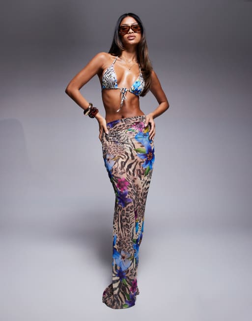 ASOS DESIGN Flora mesh beach skirt in abstract print