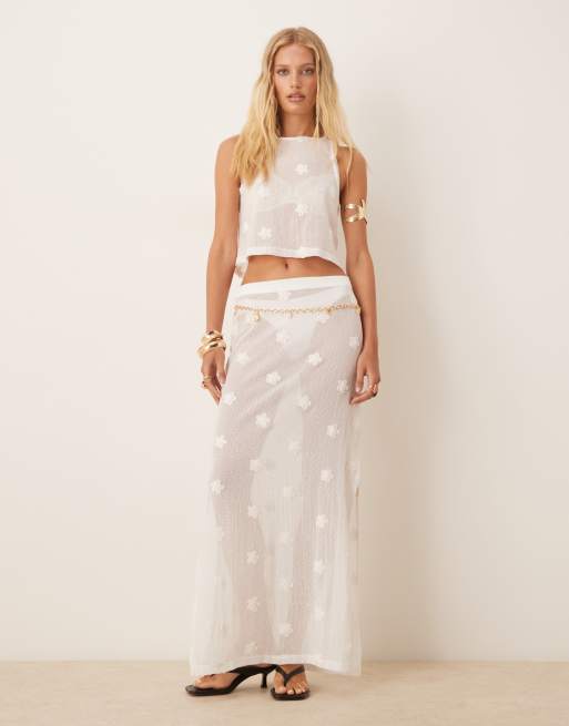 ASOS DESIGN floral embroidered tie side detail maxi skirt in white - part of a set