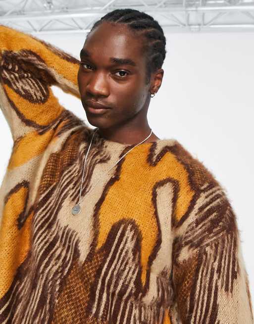 ASOS DESIGN fluffy knit sweater with all over pattern in yellow