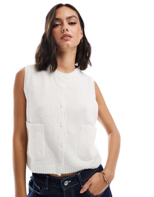 ASOS DESIGN fluffy knit vest with patch pockets in cream
