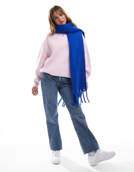 ASOS DESIGN fluffy tassel scarf in cobalt blue