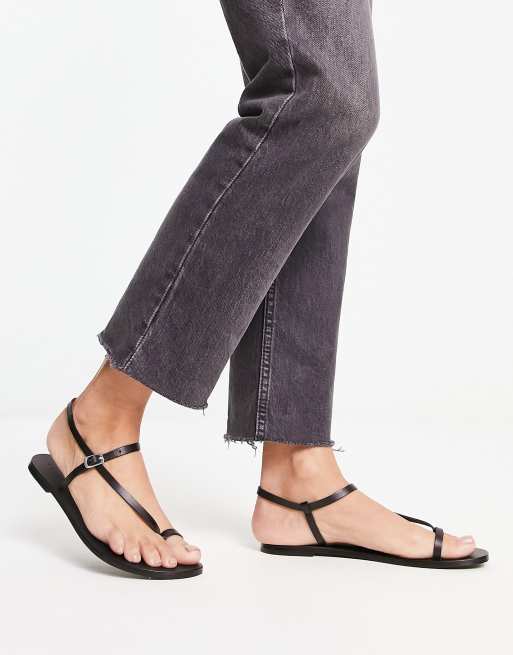 ASOS DESIGN Flutter leather toe loop flat sandal in black