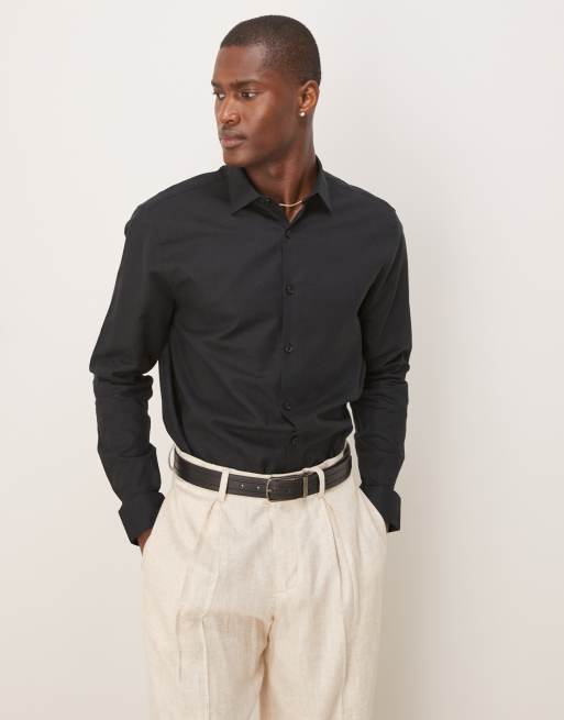 ASOS DESIGN formal linen blend regular shirt in black