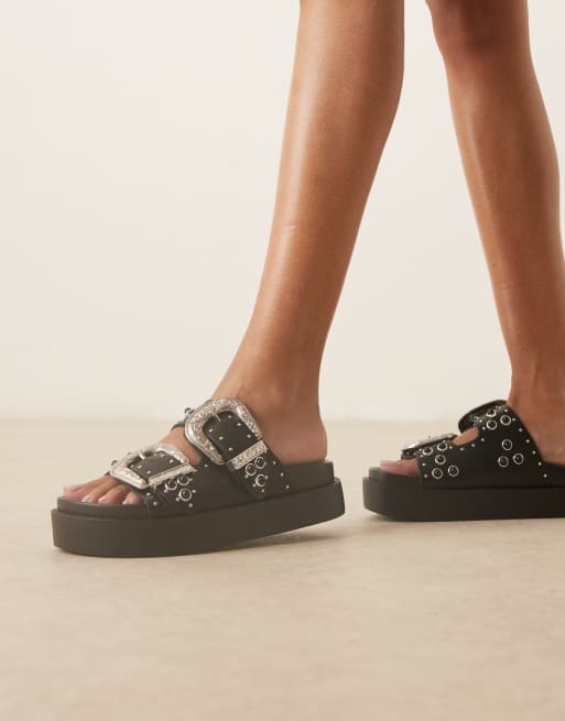 ASOS DESIGN Forward western buckle chunky footbed sandals in black