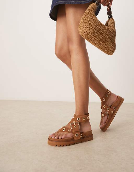 ASOS DESIGN Francoise eyelet flatform sandals in tan suede