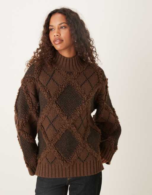 ASOS DESIGN fringed plaid oversized sweater in chocolate