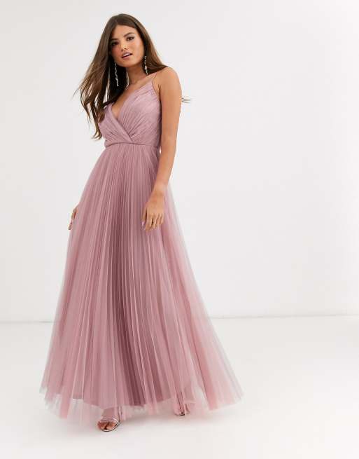 ASOS DESIGN Fuller Bust cami pleat tulle maxi dress in light rose