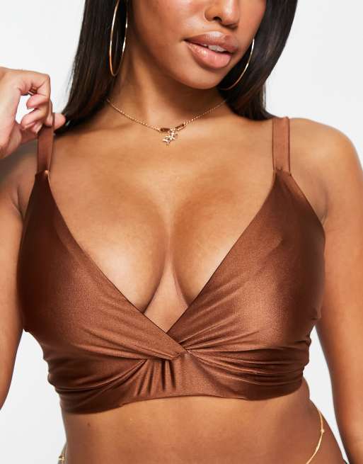 ASOS DESIGN Fuller Bust mix-and-match slinky wrap crop bikini top in brown