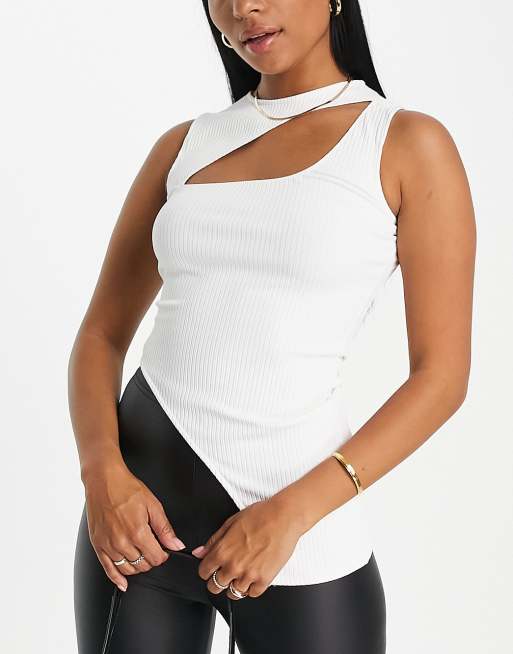ASOS DESIGN Fuller Bust sleeveless cut out top with asymmetric hem in white