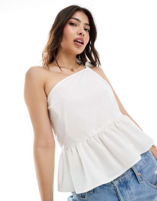 ASOS DESIGN functional one-shoulder tie top in ivory