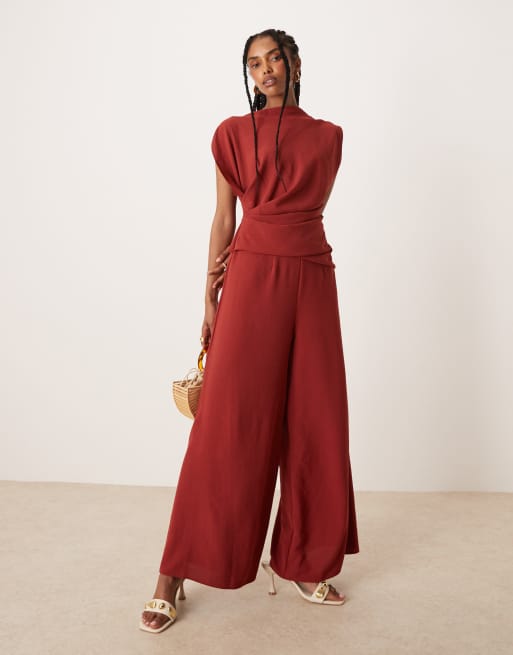 ASOS DESIGN gathered waist sleeveless jumpsuit in rust