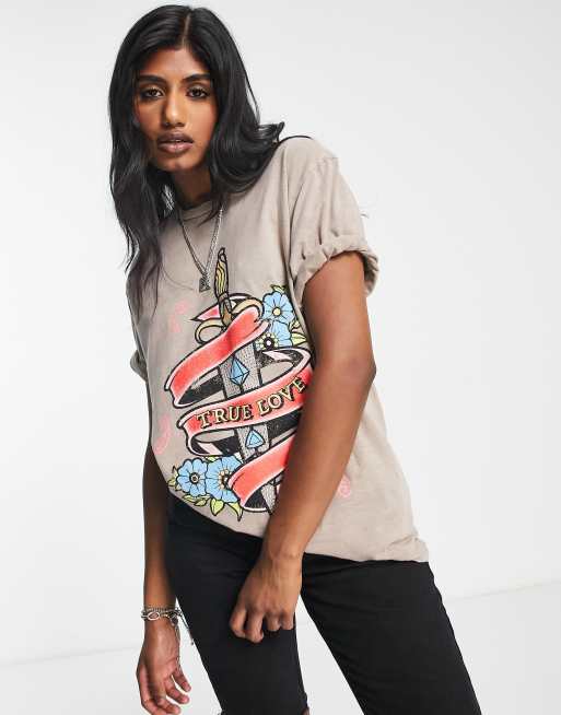 ASOS DESIGN graphic T-shirt with hot fix true love dagger in stone