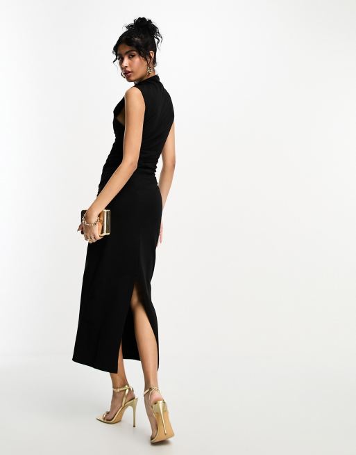 ASOS DESIGN grown on neck with ruched side midi dress in black