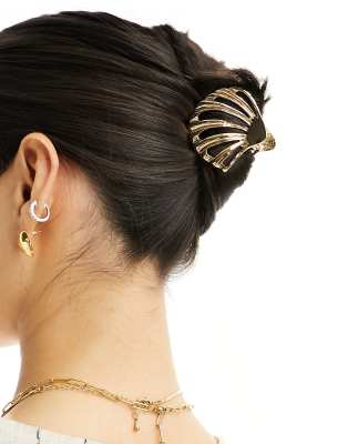 ASOS DESIGN hair clip claw with shell design in gold tone