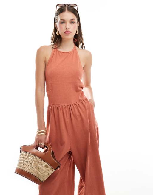 ASOS DESIGN halter neck trapeze jumpsuit in orange
