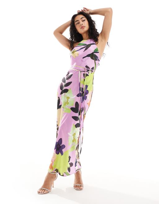 ASOS DESIGN halter racer neck midaxi dress with tie waist in bold floral print