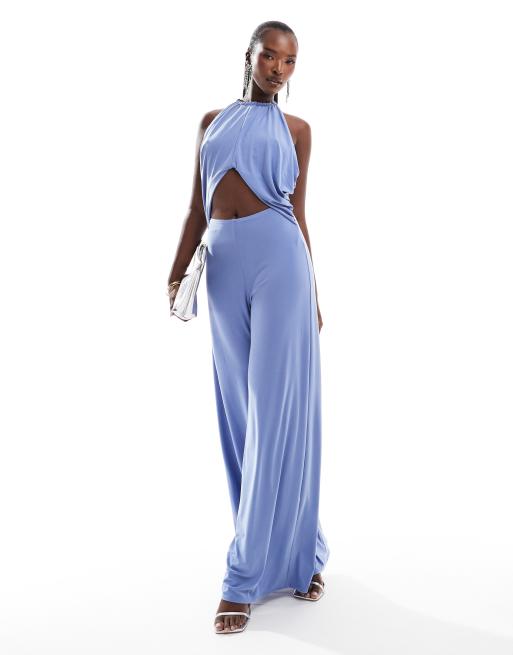 ASOS DESIGN halter ruched jumpsuit with central cut out detail in slate