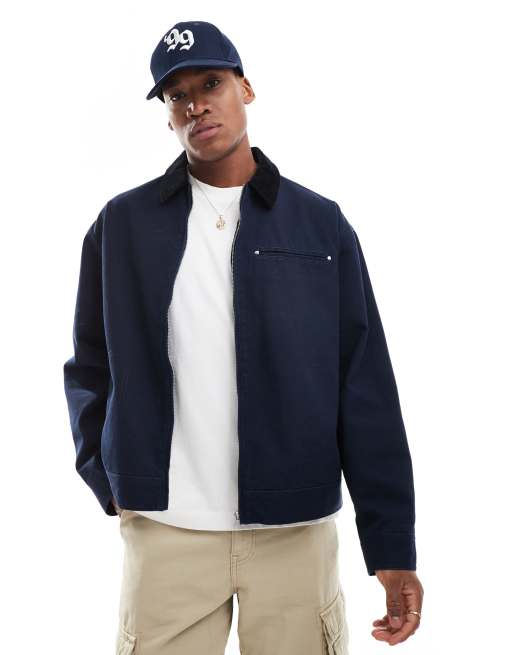 ASOS DESIGN Harrington jacket with cord collar in navy