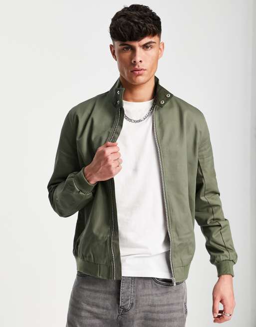 ASOS DESIGN harrington jacket with funnel neck in khaki
