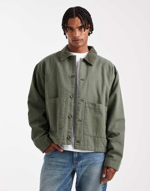 ASOS DESIGN harrington jacket with quilted lining in khaki green