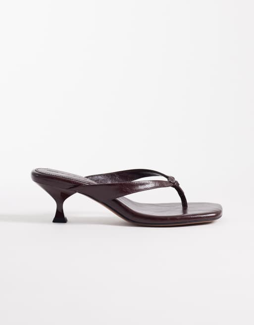 ASOS DESIGN Havana toe thong kitten heel sandals in chocolate