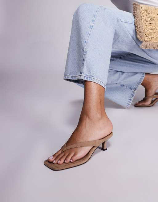 ASOS DESIGN Hawaii kitten heeled flip flops in taupe suedette