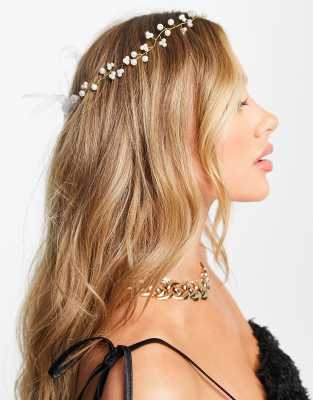 ASOS DESIGN headpiece with pearl floral detail in gold
