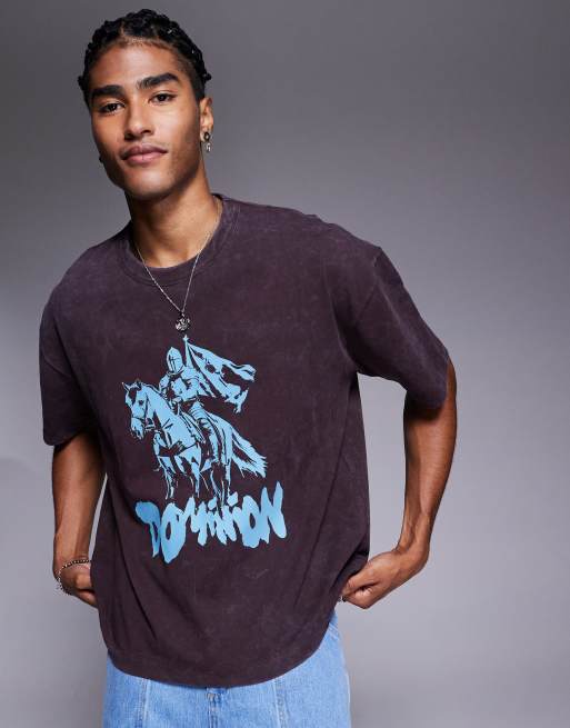 ASOS DESIGN heavyweight boxy oversized T-shirt with chest graphic in washed brown