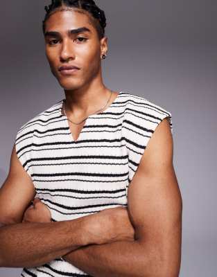 ASOS DESIGN heavyweight boxy oversized tank in textured black and white stripe