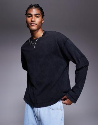 ASOS DESIGN heavyweight boxy oversized washed long sleeve T-shirt in black