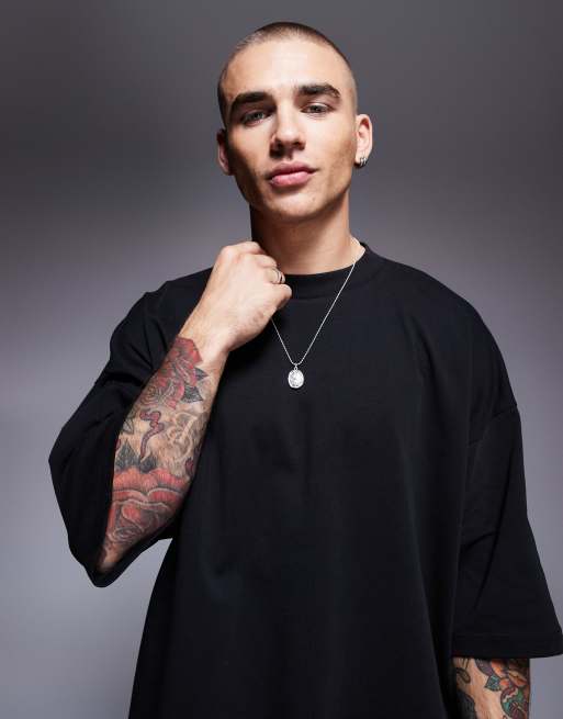ASOS DESIGN heavyweight extreme oversized half sleeve T-shirt in black
