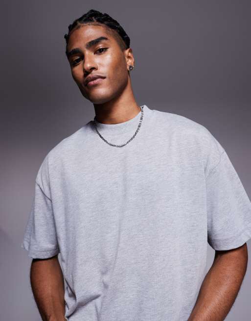 ASOS DESIGN heavyweight oversized boxy half sleeve T-shirt in heather gray