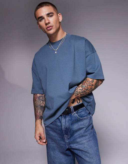 ASOS DESIGN heavyweight oversized dropped shoulders t-shirt in charcoal