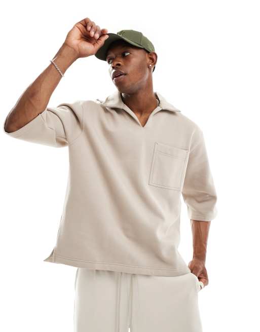 ASOS DESIGN heavyweight oversized short sleeve sweatshirt in stone
