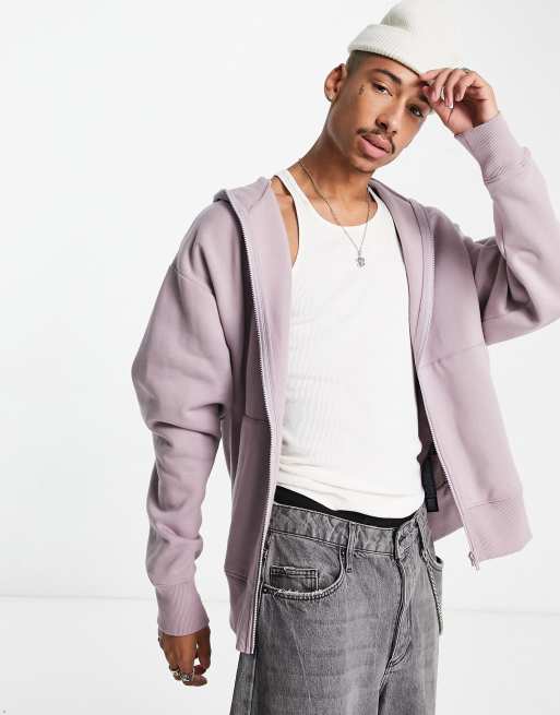 ASOS DESIGN heavyweight oversized zip through hoodie in washed purple