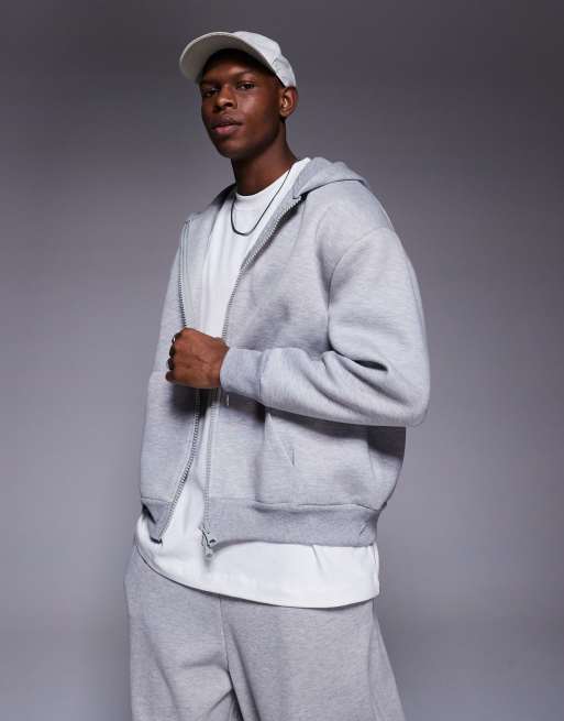 ASOS DESIGN heavyweight relaxed hoodie with zip in scuba-style fabric in gray heather