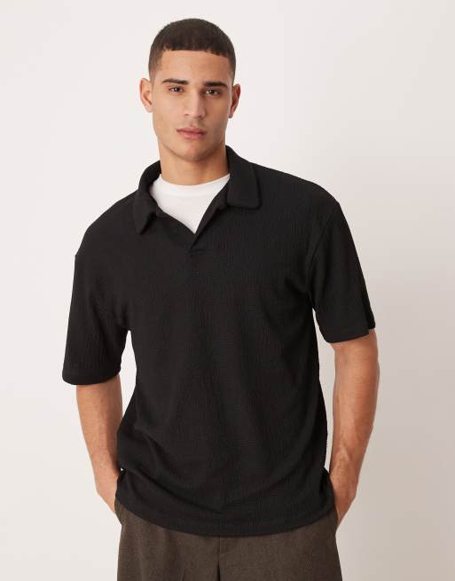 ASOS DESIGN heavyweight relaxed polo shirt in black crinkled rib knit