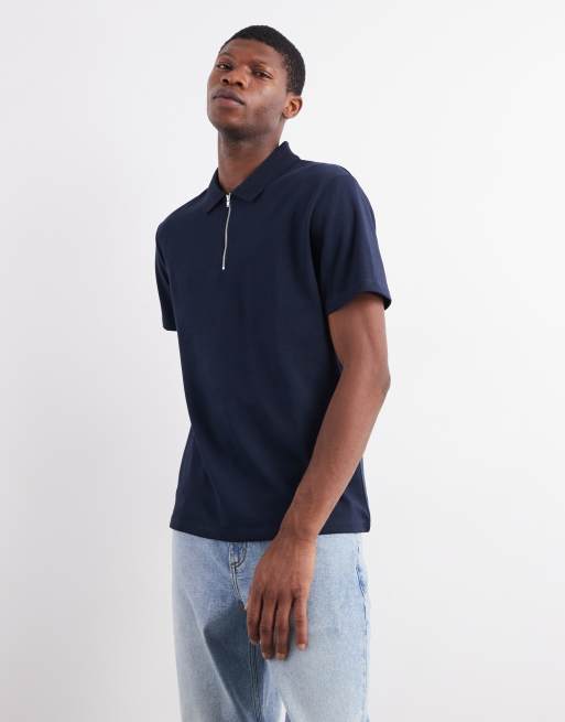 ASOS DESIGN heavyweight zip polo shirt in navy soft touch