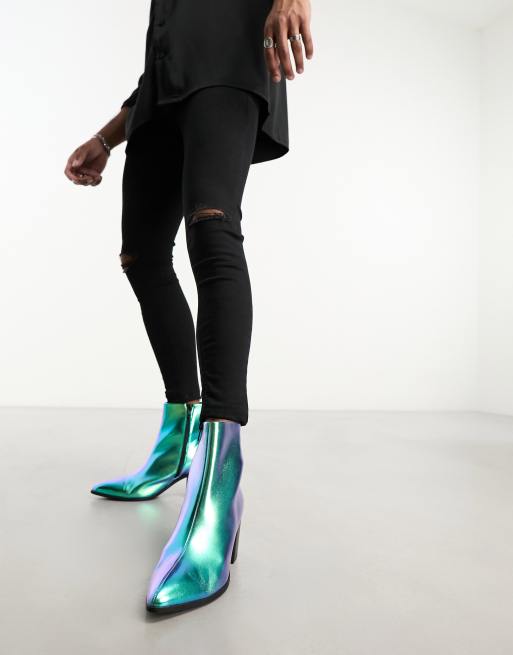 ASOS DESIGN heeled chelsea boot in blue mirror faux leather