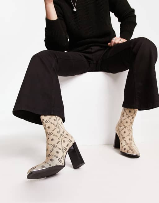 ASOS DESIGN heeled chelsea boots in stone monogram print with toecap detail