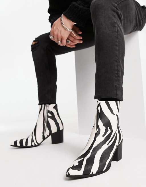 ASOS DESIGN heeled Chelsea boots in textured zebra print faux leather