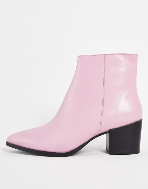 ASOS DESIGN heeled chelsea boots with pointed toe in pink leather
