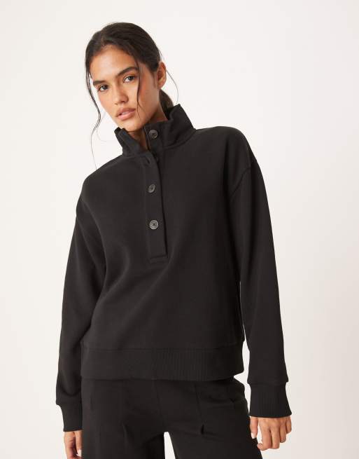 ASOS DESIGN henley collared sweatshirt in black - part of a set