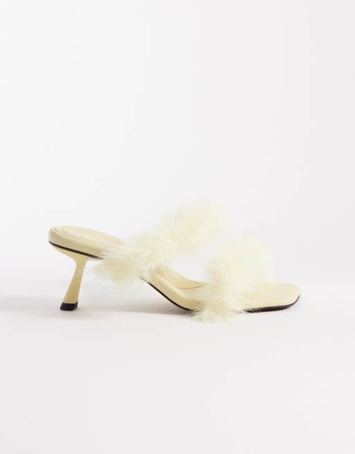 ASOS DESIGN Hercules faux fur minimalist mid heeled mules in lemon